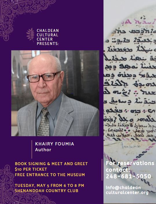 Join us for a book signing and meet and great with Subdeacon Khairy Foumia, author and Chaldean Diocese Liturgical translator of ancient manuscripts. Presented by the Chaldean Cultural Center.