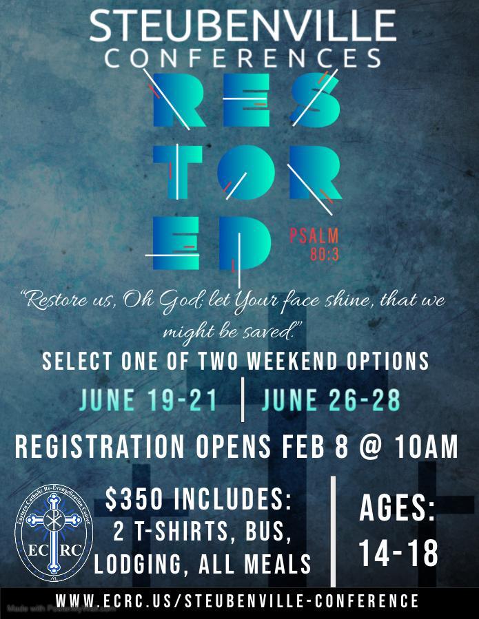 Catholic Conferences to bring high-schoolers into a life-changing encounter with Jesus Christ. High school students from across the country spend the weekend at the Franciscan University located in Steubenville, Ohio and hear talks from the top Catholic speakers. 2020 Dates: