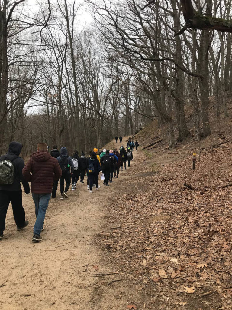 On Saturday, April 2, Fr. Marcus Shammami and Fr. John Jaddou led a group of hikers to Saugatuck, Michigan for the annual lenten hike. The day began with Holy Mass at St. Peter’s Catholic Church in Douglas, Michigan, before heading to the Saugatuck State Park for a 3-5 mile hike along Lake Michigan. During the hike, walkers prayed together and also spent time in silence.